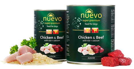 Блок консервованого корму для цуценят з куркою яловичиною і рисом Nuevo Junior 6*400 г